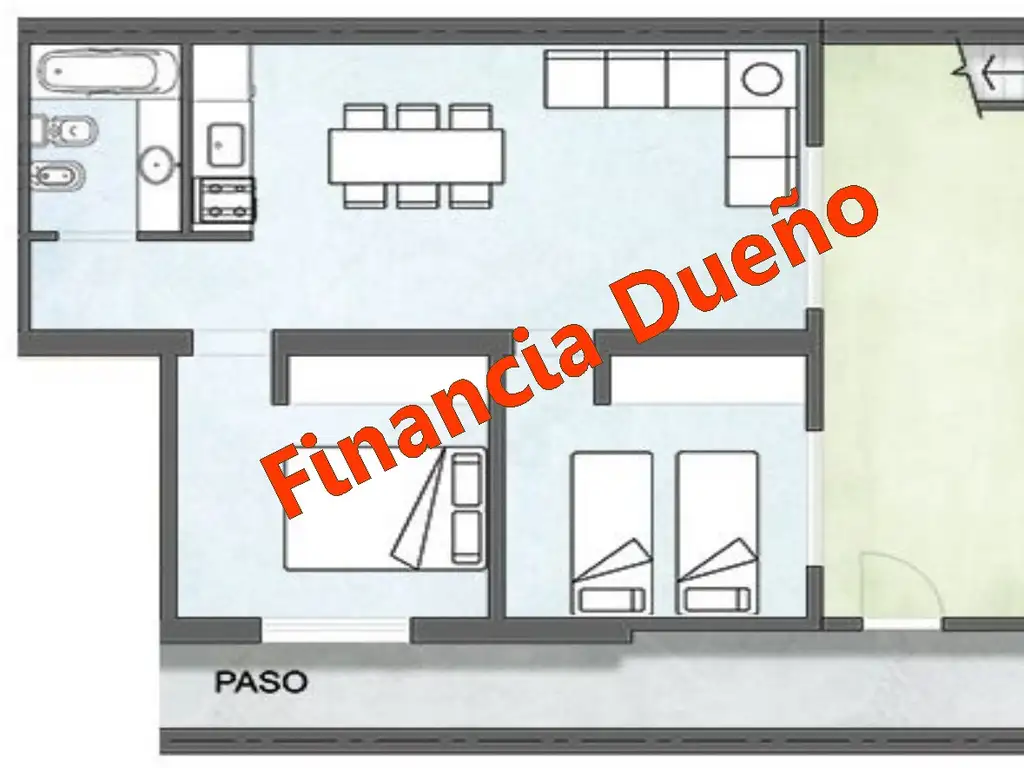 Compuesto por amplia Cocina-Comedor, 2 cómodos dormitorios, Baño completo y Patio Grande (7 x 3.3 mts)