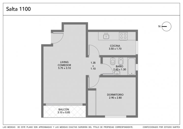 Consta de: living comedor, balcón, cocina, baño y dormitorio.