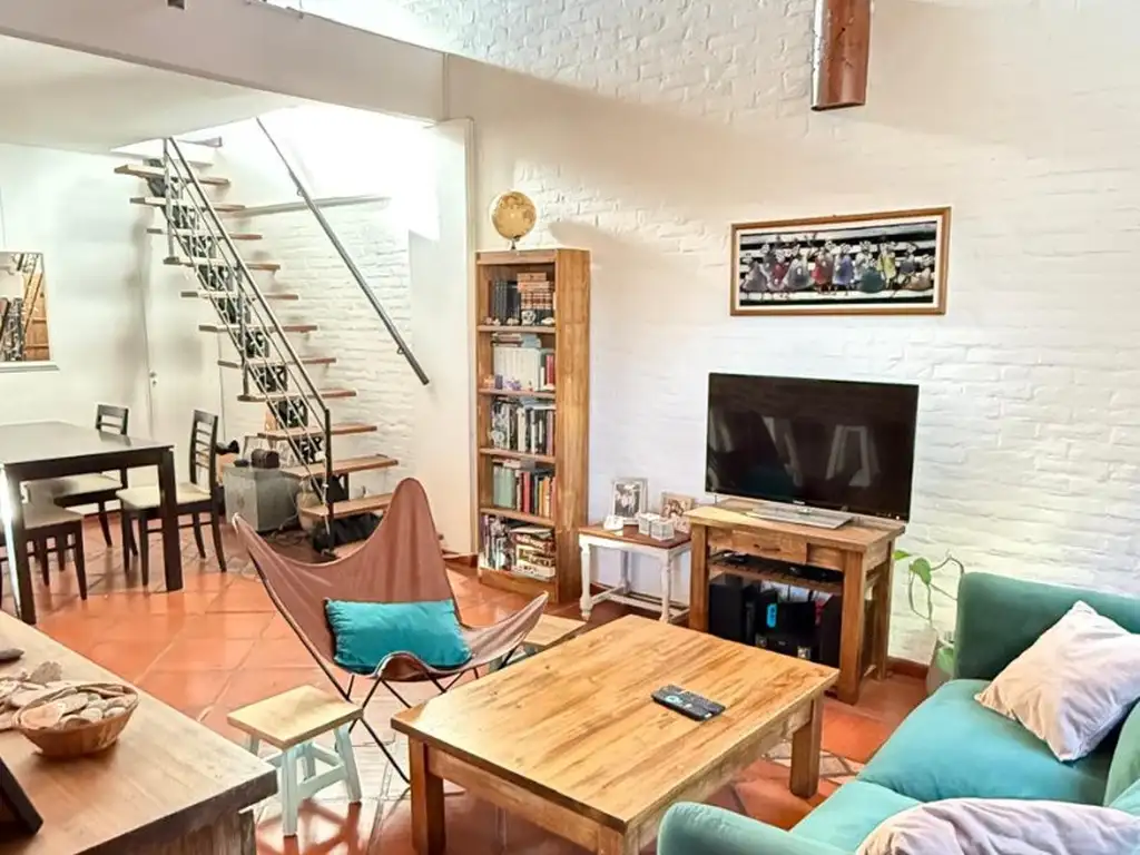 Excelente departamento en dúplex, contrafrente, orientación noroeste, super luminoso! Cuenta con living comedor con tiro balanceado, doble altura, cocina con barra desayunadora, muebles completos y agua por calefón, baño completo compartimentado, dormitorio principal con doble placard, tiro balanceada, aire split y salida a balcón, el segundpo dormitorio con placard y aire split. En planta alta amplio play con placard, aire split y toilleta. Salida a terraza propia de 5,10 x 3,70.
