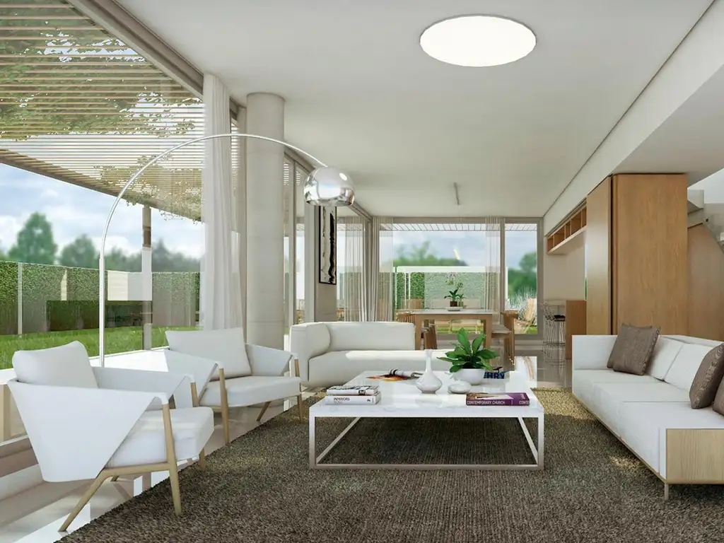 Planta baja: amplio estar-comedor con salida a galería y jardín, pileta propia, cocina con isla, toilette de recepción.