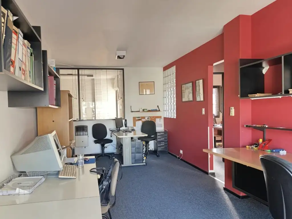 A la izquierda del ingreso al depto se encuentra la cocina, de 1,36 mts, x 2,20 mts con anafe a gas, alacenas y bajo mesada y a continuación, también a mano izquierda, se encuentra espacio de 3,33 mts x 2,20 mts que se utiliza actualmente como oficina. Ambos espacios integraban la cocina-lavadero original, por lo que pueden unirse nuevamente (se han mantenido las conexiones de agua, gas y desagües) y se tendría un espacio de cocina y lavadero de 4,70 mts x 2,20 mts aproximadamente.