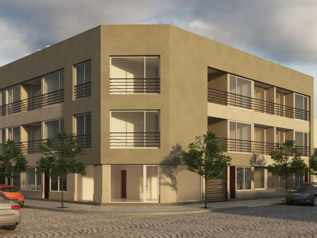 La obra consta de departamentos de 1 y 2 ambientes con/sin patio, realizada con materiales de primera calidad: piso zócalo cerámico, pared con grueso enduido pintado, techo cieloraso placa y yeso.