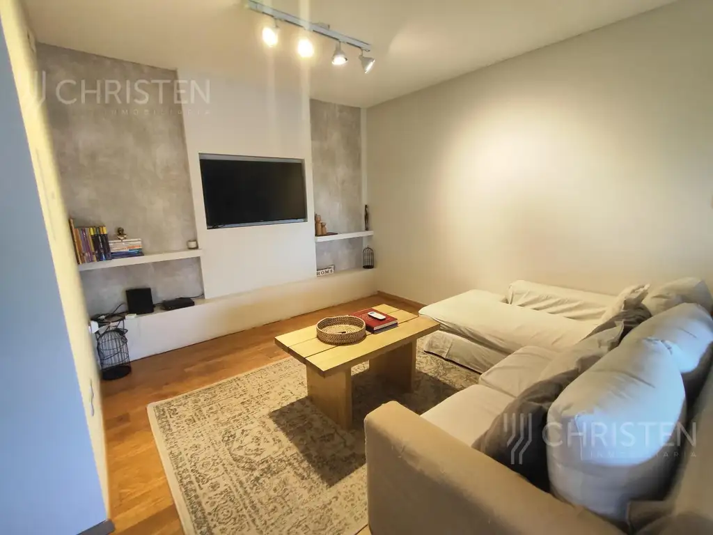 Ingreso a un amplio living estar comedor con barra y salida a un balcón orientación al "este".