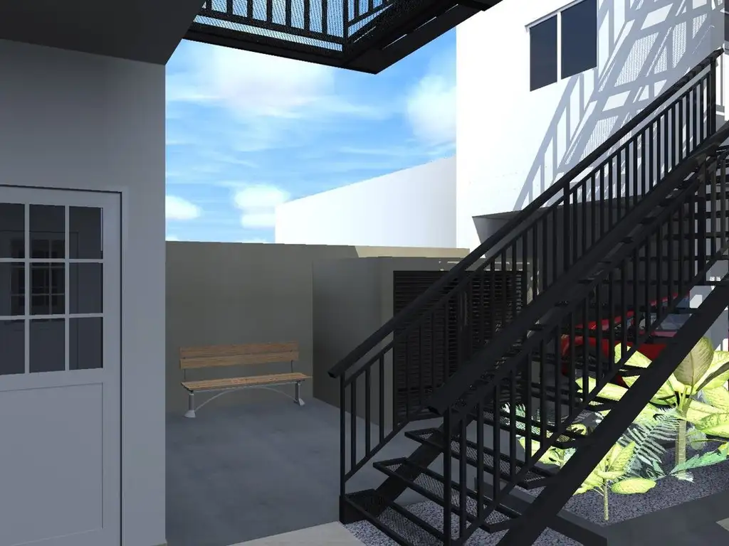 - Escaleras de hormigón con barandas.