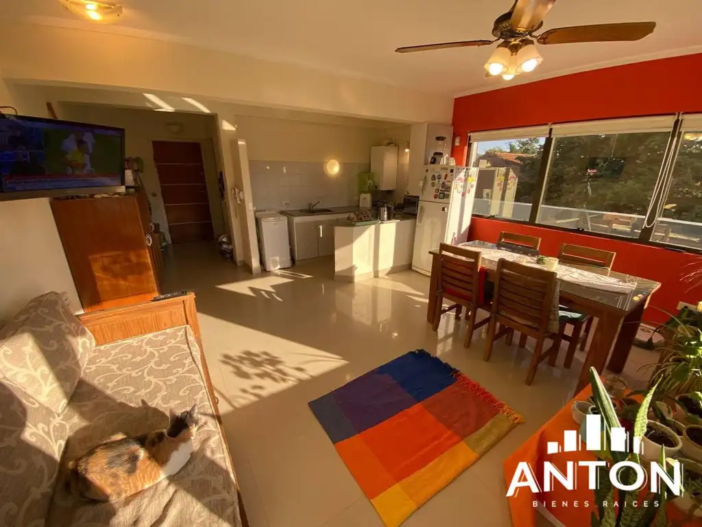 ¡Oportunidad única! Amplio y luminoso departamento de 2 ambientes ideal para disfrutar de un estilo de vida cómodo y moderno. Cuenta con una espaciosa habitación con amplios ventanales, un agradable living comedor con cocina integrada, y un cómodo baño completo. El hermoso balcón recorre todo el departamento, perfecto para relajarse o disfrutar de una buena vista. Además, incluye cochera para dos autos con portón eléctrico, brindando seguridad y comodidad. ¡No te lo pierdas!