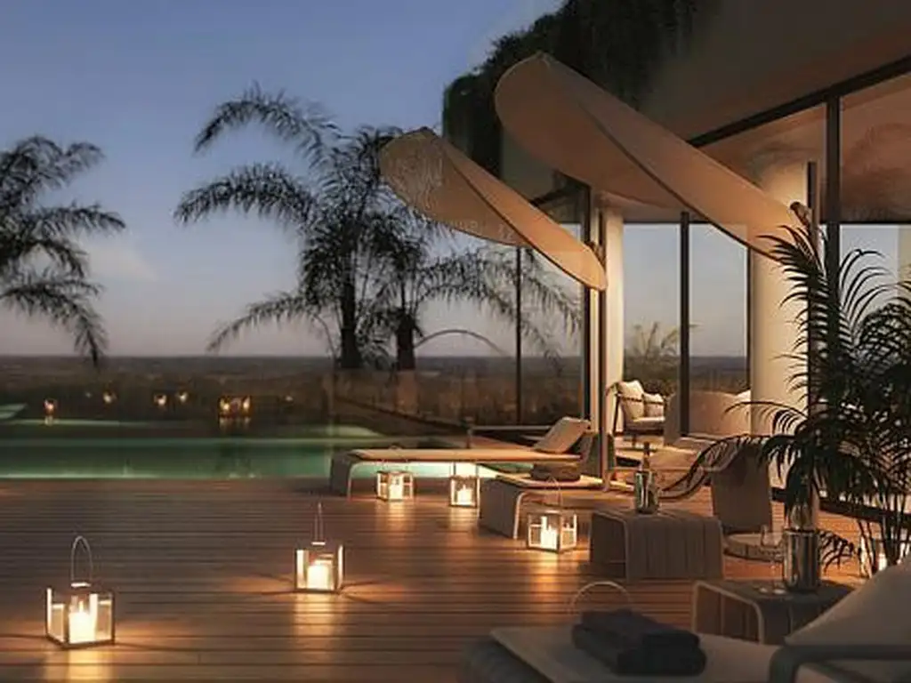 Hall de entrada. Amplio living comedor con cocina integrada y dos dormitorios en suite.