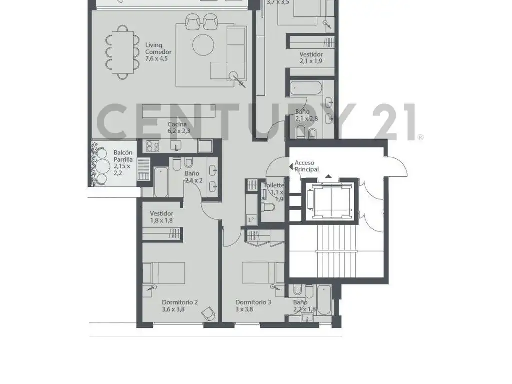 - 3 dormitorios