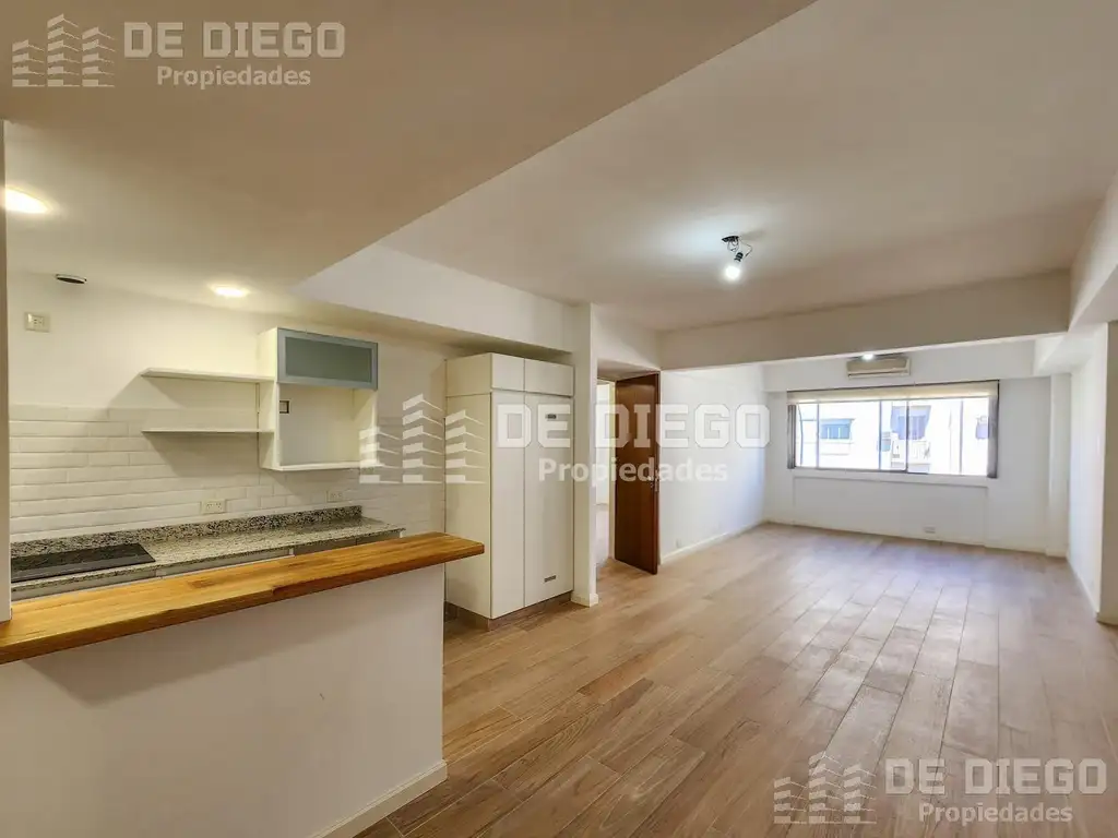 Cocina incorporada al living, con barra desayunador. 2 habitaciones, ambas con placard. Baño totalmente reciclado.