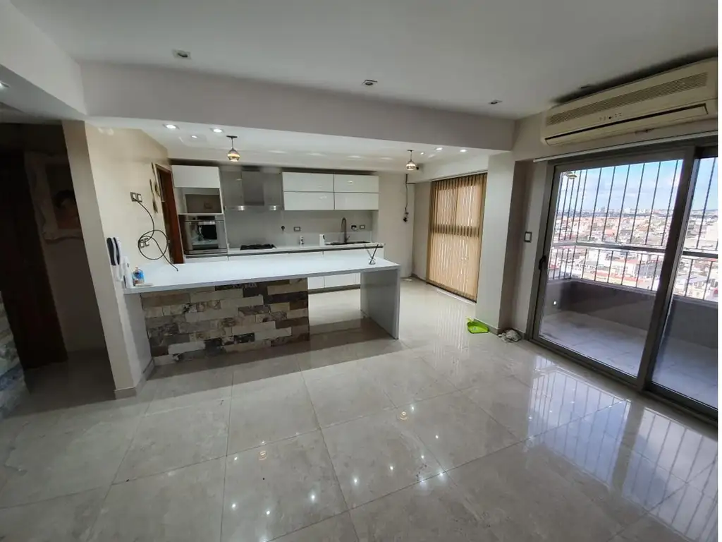 Departamento de 4 ambientes en venta, cuenta con Amplio living comedor y cocina incorporada, separada por isla. Lavadero aparte. Toilette. Balcón terraza corrido. Ambiente divisor de las habitaciones, baño completo, 2 dormitorios con placard empotrado y salida al balcón, y otro en suite con vestidor y baño privado.