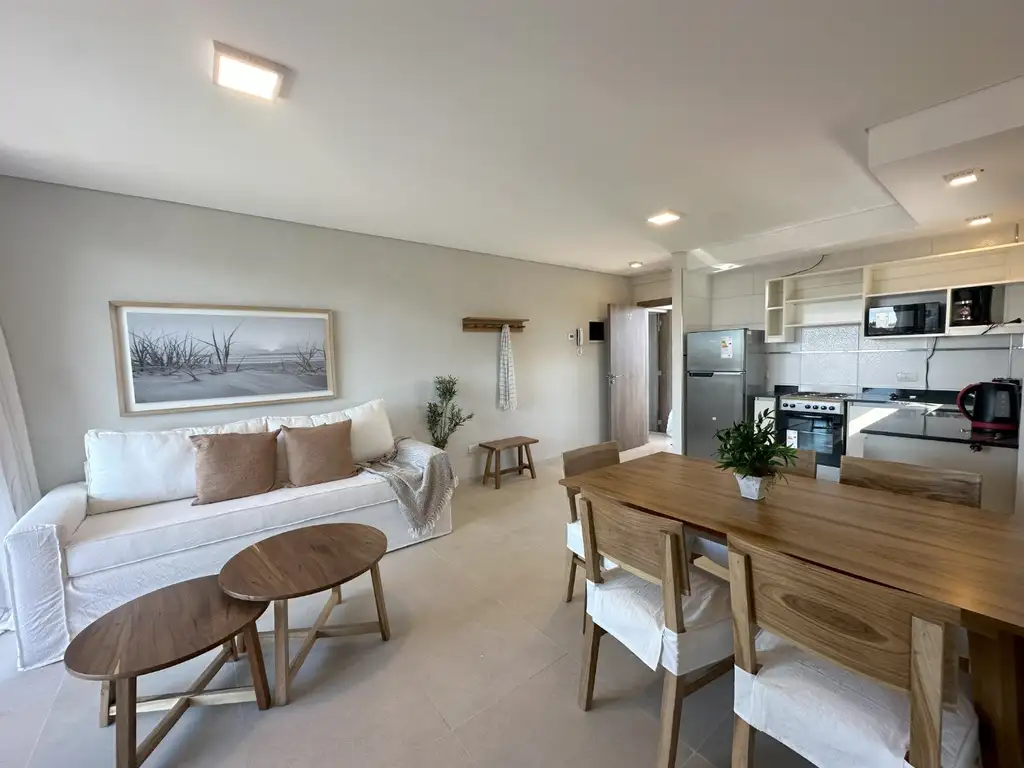 -Living comedor integrado a la cocina, con balcón con parrilla.