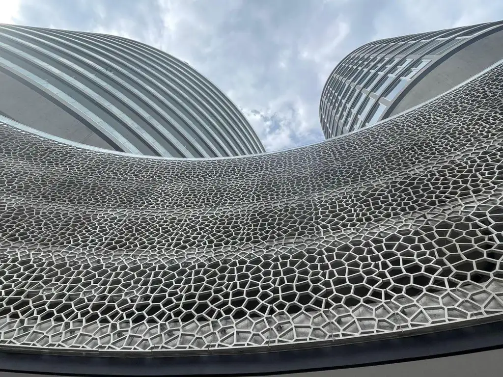 El complejo se desarrolla en dos torres elípticas sobre un gran basamento que integra: