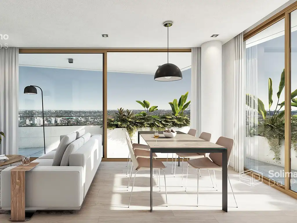 Departamento de 3 ambientes a la venta de 115.95 m2 totales. La unidad cuenta con estar, comedor, y cocina integrados en un amplio espacio de 8.30 x 3.50 mts. Expansión a la terraza. Lavadero. Baño completo. Dos dormitorios con salida a otro balcón de 6.00 x 1.50 mts. Un dormitorio mide 3.15 x 2.80 mts. Y el dormitorio principal mide 3.50 x 2.80 mts con baño en suite y gran espacio de guardado.
