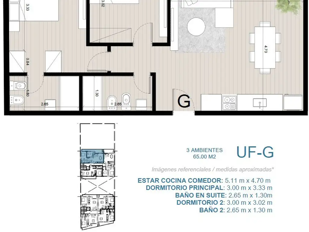 - 2 dormitorios