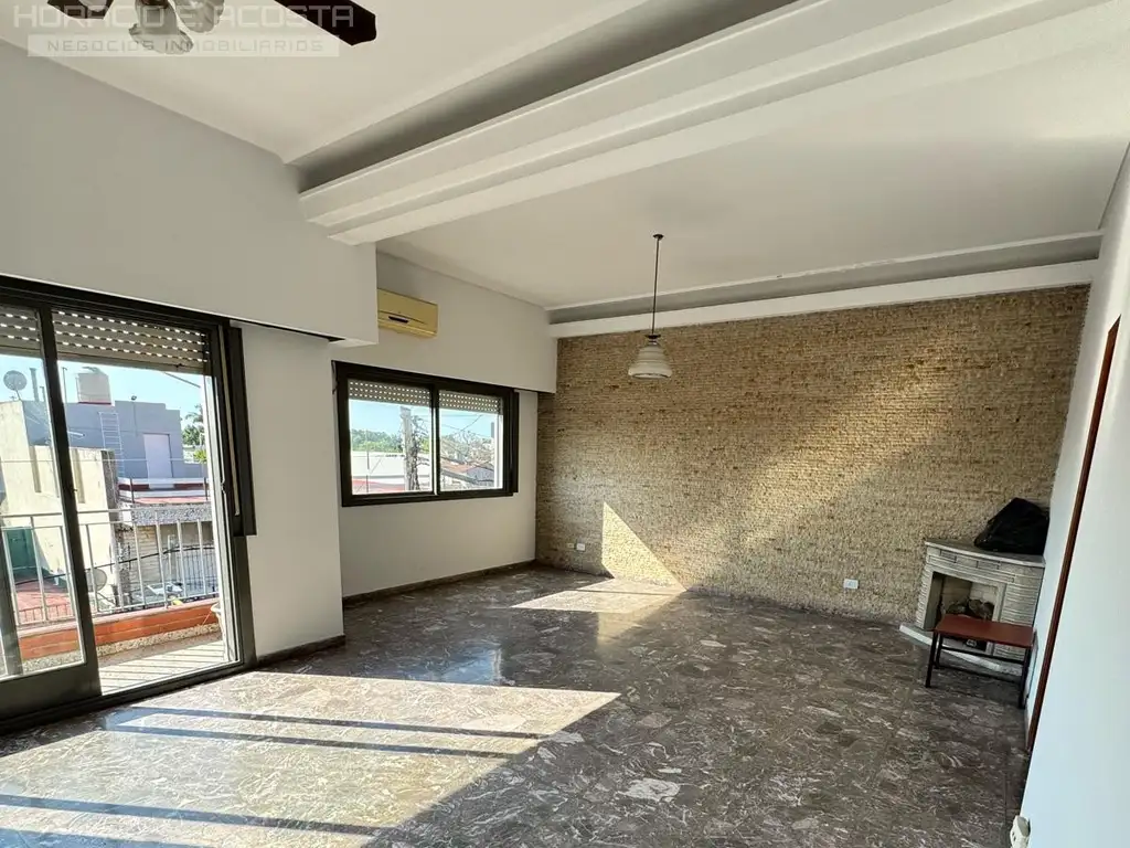 Ingresando por un hall privado el cual da acceso a un pasillo que en primer instancia nos recibe una cocina completa suficientemente grande como comer diariamente. Avanzando aceedemos al una sala comedor con pisos de marmol , gran entrada de luz natura y ventilación , un hogar a gas y espacio suficiente para cualquier tipo de uso .
