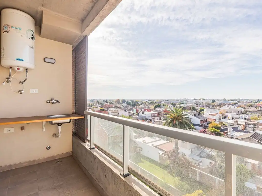 -balcón con acceso desde el living que permite ingresar la luz natural. Este cuenta con bacha, conexión para lavarropas y aire acondicionado.