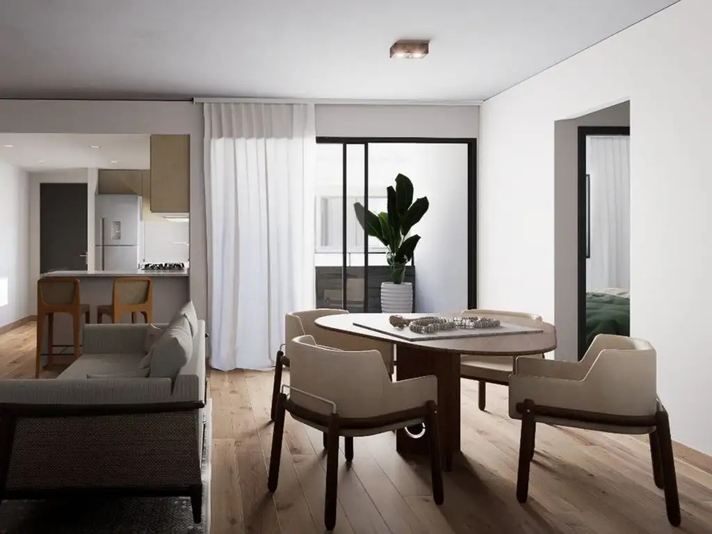 -Living y cocina de porcelanato o revestimiento similar de primera calidad.