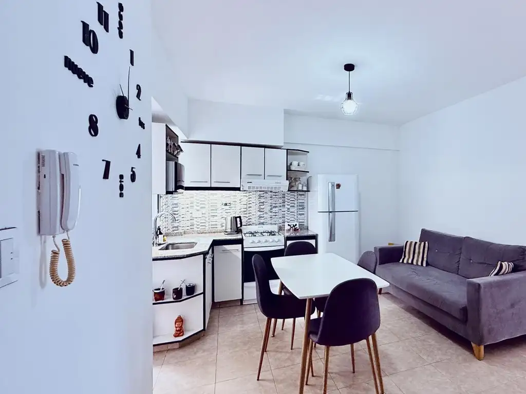 Al ingresar, se aprecia un living comedor con cocina integrada, con muy buena ventilación y luz natural. El dormitorio cuenta con baño en suite con bañera, y desde allí se accede a un gran patio trasero de 22,08 m2, ideal para disfrutar del aire libre, sumar verde o armar un espacio de relax.