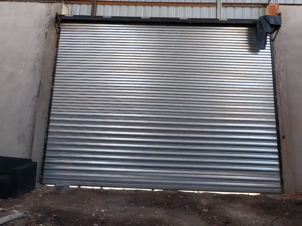 Unidad en construcción con puerta para acceso de personas y Entrada de camiones con persiana ciega de enrollar automática de 6.50x4.50.