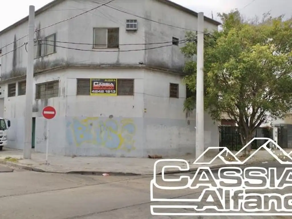 Galpón sobre lote de 10,40 x 30 mts. APROX. de fondo SOBRE ESQUINA, playa de entrada camiones, Galpón con loza y muy pocas columnas. Entrada preparada para camión, piso de hormigón, Oficinas vs. Baño sectorizado y vestuario con duchas. PLANTA ALTA, por escaleras con montacargas electrico ( a verificar funcionamiento), techos de LOZA en toda la superficie y tanques de agua elevados.