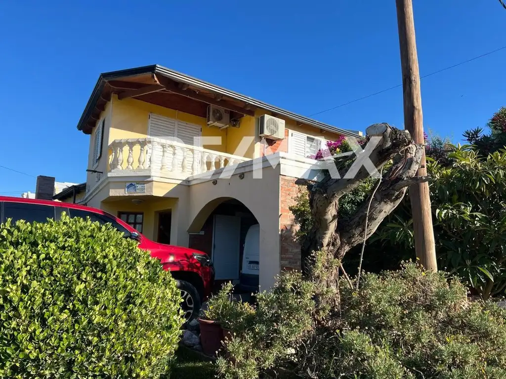 Amplio comedor con mobiliario completo, incluyendo mesa, sillas y dos sillones de un cuerpo. Modular con vajilla y cristalería. Cocina equipada con electrodomésticos: heladera, horno y termotanque. Baño completo.