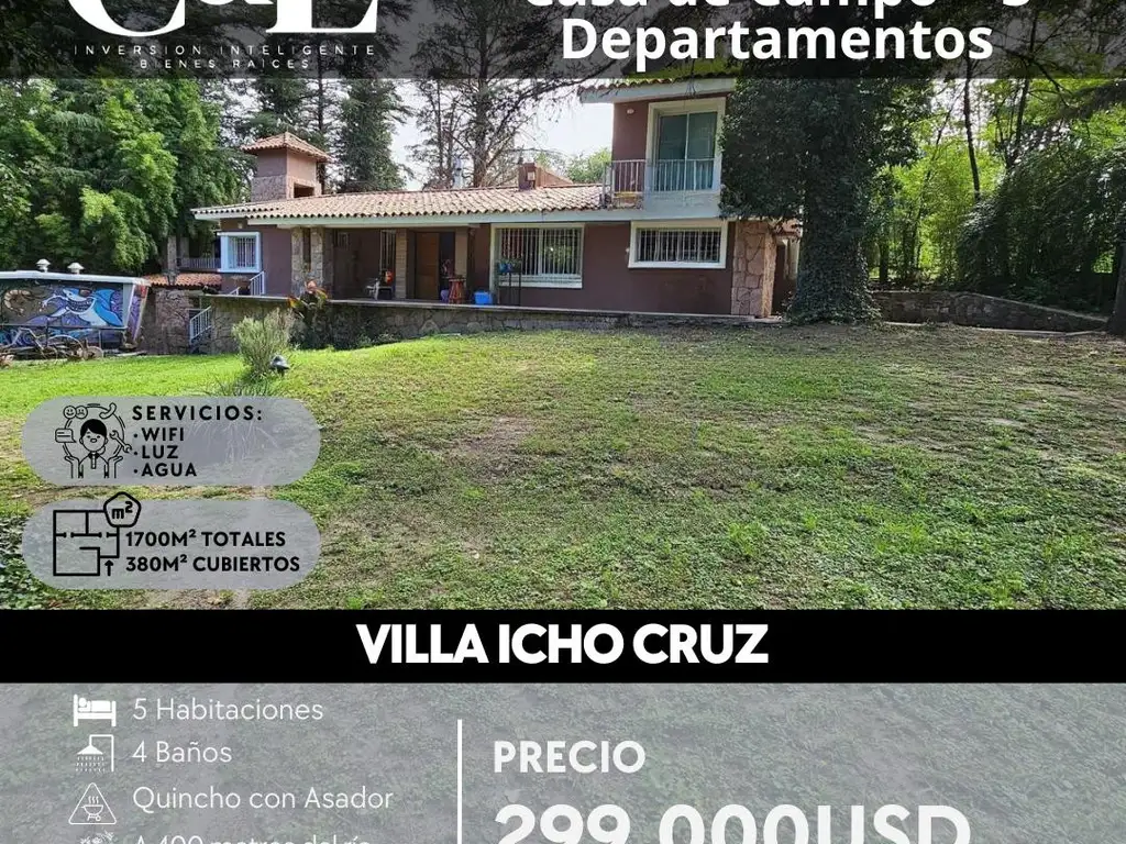 Venta Casa De Campo Con 3 Departamentos En 1.700M² De Terreno. Icho Cruz, Punilla