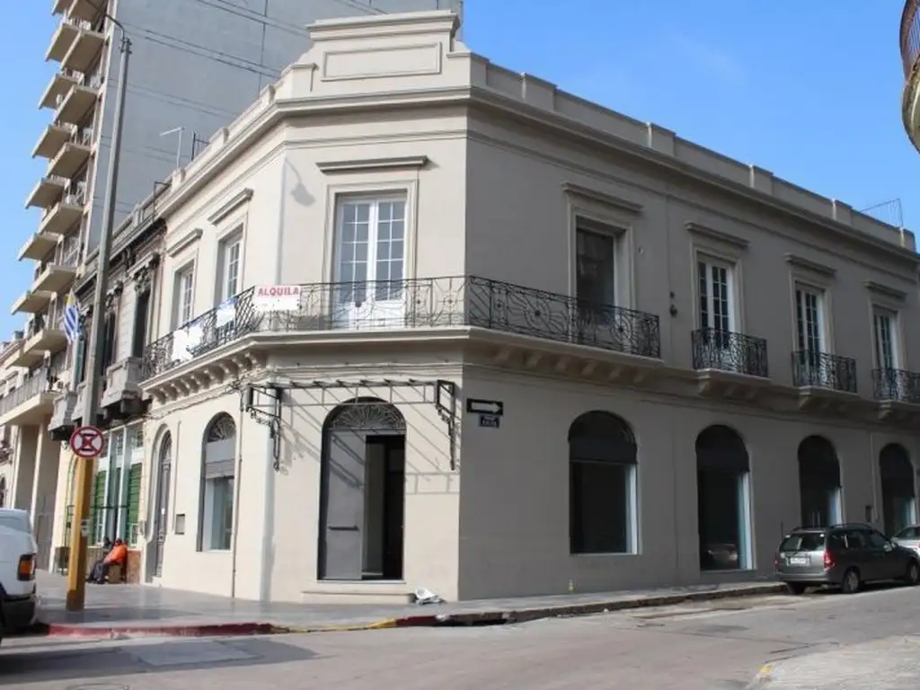 Gran edificio de 100 años reciclado a nuevo hace 3 años, conservando el estilo de la época utilizando materiales nobles. El local ocupa toda la esquina, lo que le da gran exposición y luminosidad. En la planta baja, gran local, sin divisiones que facilmente se puede dividir, con doble batería de baños, cocina y depósito. Desde ahí o por fuera, con entrada independiente y de gran importancia se accede a la planta alta. En planta alta hay una serie de oficinas de diferentes tamaños, con gran adaptabilidad, dos baterias de baños dobles y cocina. Los pisos en madera y marmol. Desde éste piso se accede a roof top con parrillero y 200m2 de area libre con muy linda vista. Está estratégicamente ubicado frente a la única entrada y salida de Buquebus y a la entrada y salida de pasajeros de cruceros.