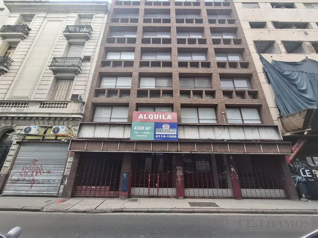 El inmueble es de uso comercial y se encuentra en buen estado de conservación general. Emplazado sobre terreno propio de 13,15 mts de frente y 42, 95 mts de fondo. Cuenta con una superficie total cubierta de 5885 m2 desarrollada en subsuelo, planta baja, y once pisos. Las plantas del 1 al 3 piso cuentan con 6 unidades por planta y del 4 al 10 piso con 8 unidades por planta. Las divisiones de todos los pisos pueden ser removidas en caso de desear plantas más libres hasta llegar a una sola unidad por piso. La PB está retirada respecto de la línea municipal unos 2 mts aproximadamente y presenta un local comercial de 328 m2 y el acceso a los pisos superiores mediante escalera y tres ascensores con capacidad para 5 personas. La propiedad tiene 8 baños privados por planta y sanitarios generales para ambos sexos en cada piso. Calefacción central por losa radiante. No posee sistema de refrigeración pero el edificio cuenta con circuitos eléctricos reforzados para equipos individuales en cada oficina. En el subsuelo hay 24 cocheras con acceso por rampa.