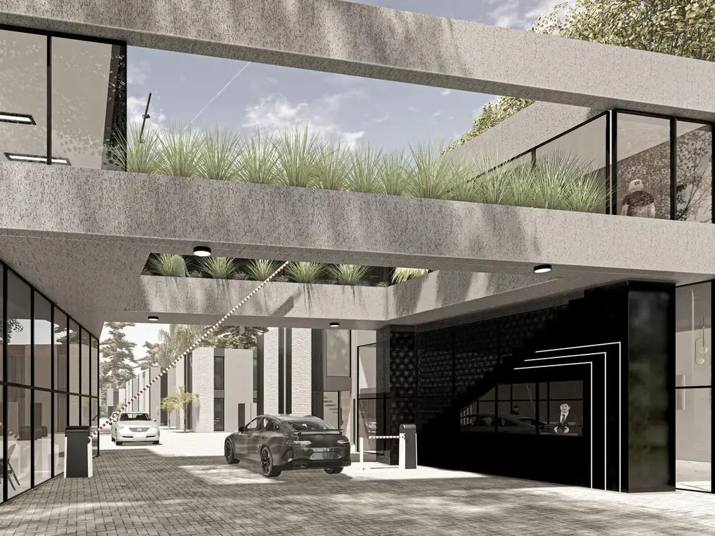 Detrás de este sector comercial y administrativo, el proyecto incluye un complejo habitacional compuesto por 12 unidades tipo dúplex de 1, 2, 3 y hasta 4 dormitorios, con superficies que van desde los 54 metros cuadrados exclusivos para las unidades más pequeñas. Cada vivienda contará con su propio espacio de estacionamiento, además de una dársena de estacionamiento adicional frente al desarrollo.