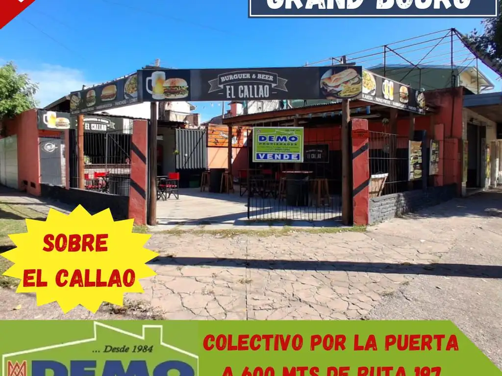 LOCAL EN EXCELENTE ESQUINA SOBRE LOTE 10x20 (200 m2) Gran Oportunidad para Inversor.Local o Deposito con doble acceso, Pisos de cemento. Oficina y Baño. Patio al frente o playa de estacionamiento. Servicios: Energía eléctrica. Red de gas natural y Pozo ciego. y Perforación de agua con Motocompresor.-Ubicación: Sobre calle Principal El Callao, zona de Comercios, Colectivos por la puerta, a 600 metros de Ruta 197. CONTADO: u$s 85.000.- a la firma del Boleto de Compra-Venta el 50% y el saldo de precio dentro de los (90) días contra la firma de la escritura traslativa de dominio por tracto abreviado y/o toma de posesión. CONSULTAR POR FINANCIACIóN