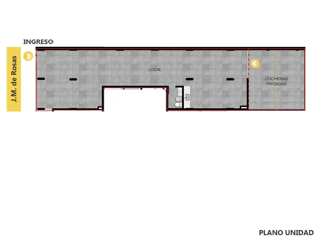 Imponente local al frente sobre calle Juan Manuel de Rosas. Perfectamente divisible. Toilette. Posibilidad de dos cocheras con acceso directo.