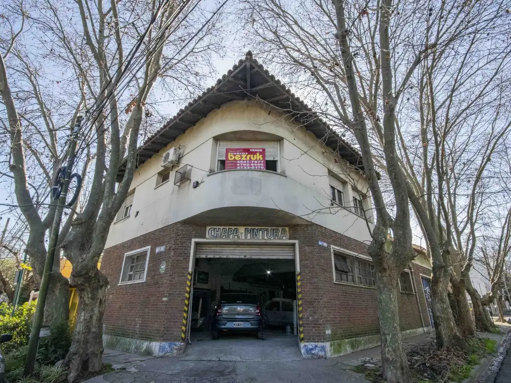 En planta baja, con entrada individual (anexable), se encuentra un taller habilitado para chapa y pintura o un local/ depósito amplio, con salida por la esquina o por un segundo portón amplio y sin columnas. Incluye baño.
