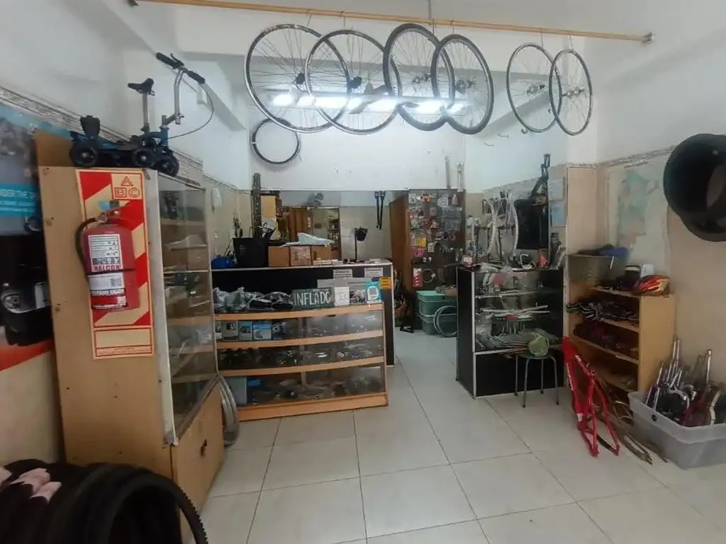 Con una llamativa vidriera de 3,5 metros Paredes revestidas en cerámicas hasta 1, 90 mts. aproximadamente, baño equipado, mueble alacena en espacio para símil cocina.