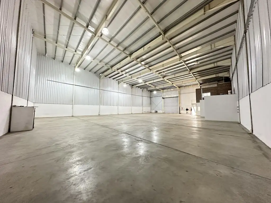 Nave en alquiler con una superficie cubierta aproximada de 900 m2, persiana de ingreso de doble altura, oficina en dos plantas vidriada. Baño, ante baño y cocina, paredes de hormigón armado hasta 2 metros aproximadamente y luego carpintería metálica hasta el techo, Altura máxima de 10 mts