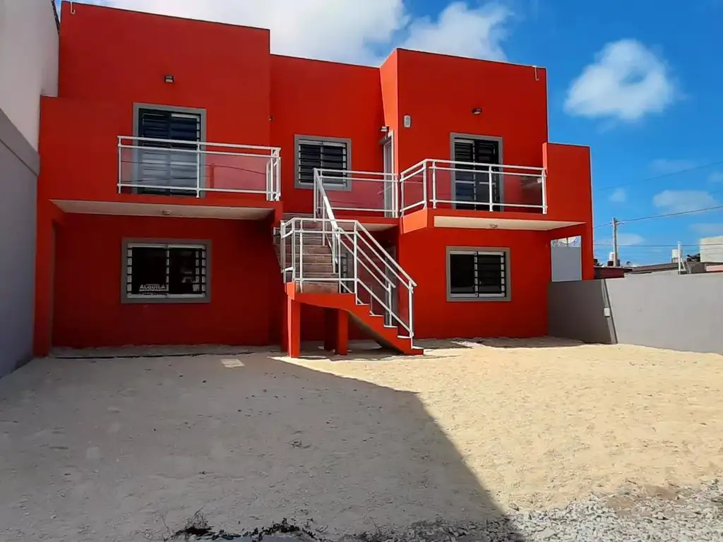 _ Complejo de departamentos de dos dormitorios en venta ubicado sobre calle 2 entre 61 y 62 (Mar del tuyú, Buenos Aires). Desarrollado en dos plantas por escalera, con disposición frente y orientación al oeste.