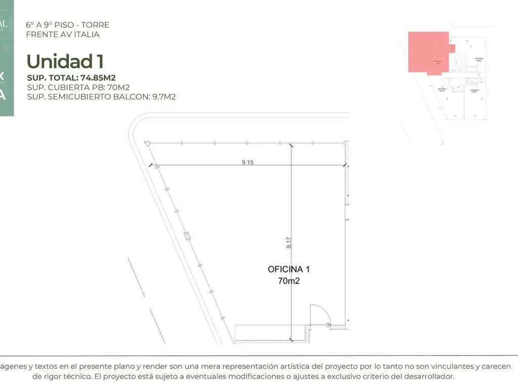 Unidad funcional 1 de 6to a 9no piso, con frente a Avda Italia.