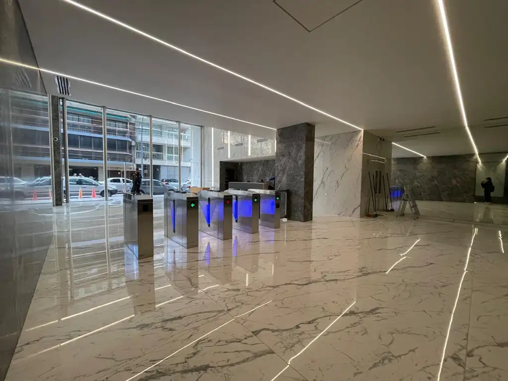 Edificio con importante hall de acceso con front desk con control de entrada por molinetes, 4 ascensores de primera línea marca Hyundai, grupo electrógeno