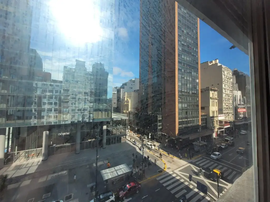 En el corazon de la ciudad, sobre Av corrientes, cerca de Av Rivadavia y Av 9 de Julio, con la linea del subte b y colectivos.