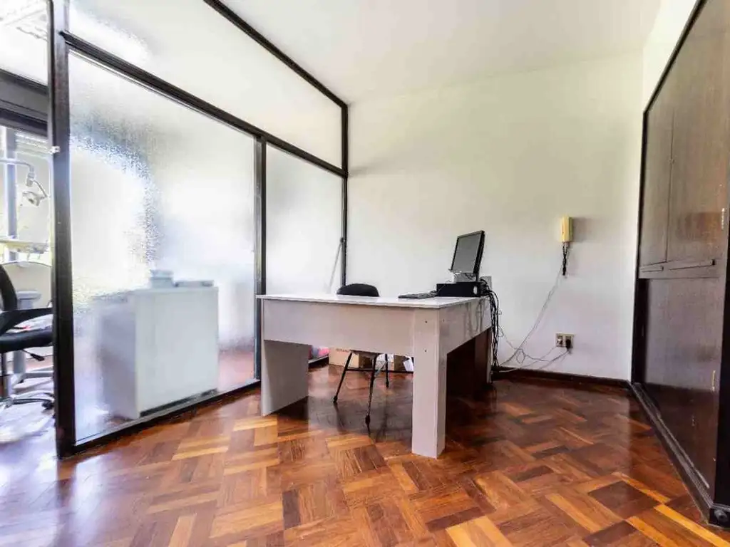 Se ingresa al inmueble por un recibidor (sala de espera), y luego accedemos a un espacio de recepción desde el cual se distribuye el acceso a tres ambientes definidos, ideales para oficinas (o consultorios).