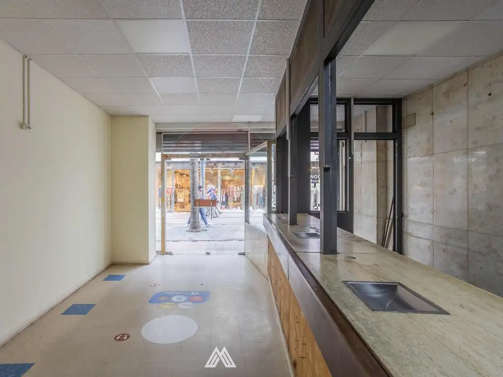 El local cuenta con vidriera hacia la peatonal, un muy amplio salón principal de 152m2 con pisos de parque, cielorraso, mostrador para atención al público y paredes de ladrillo, además incluye una oficina con baño privado, y 2 baños secundarios en muy buenas condiciones.