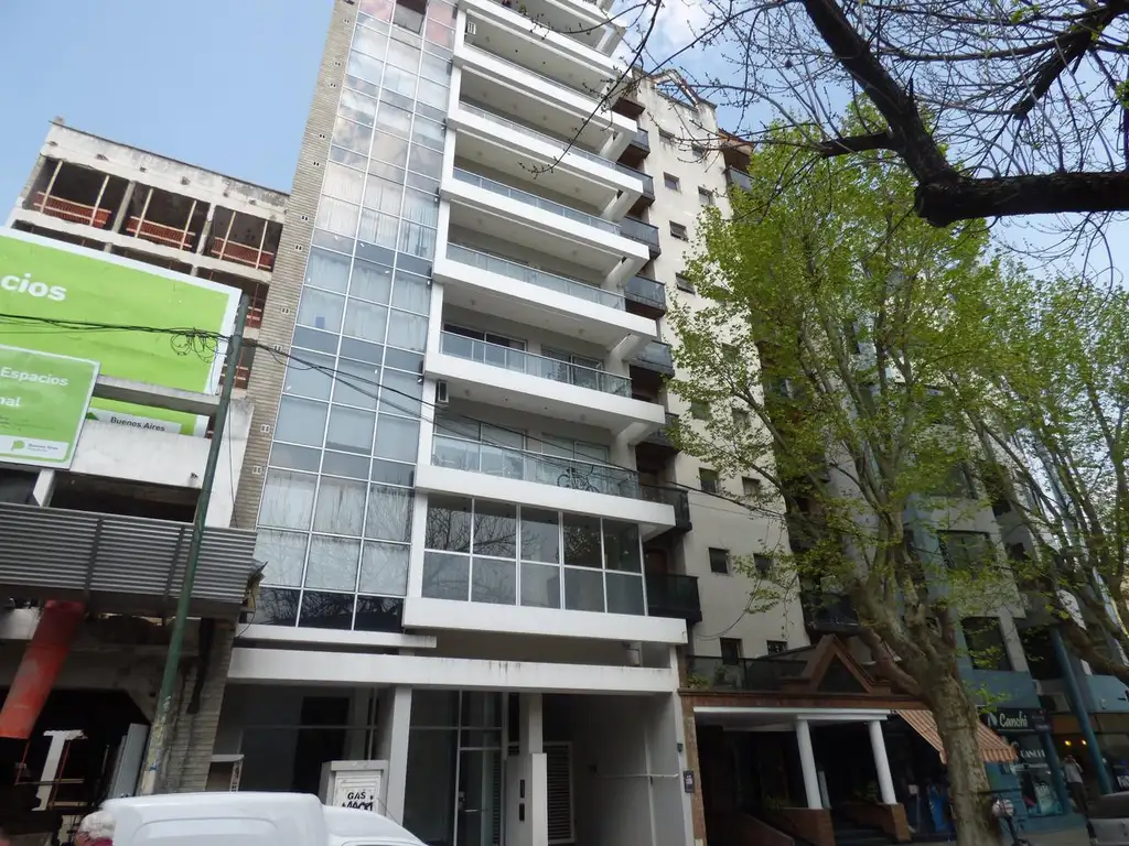 Excelente oficina tipo duplex, al frente, amplios balcones en ambos niveles, DVH blindex, Aire acondicionado en los dos niveles, cocina con anafe eléctrica, baño, muy luminoso. 93 mts. Con cochera.