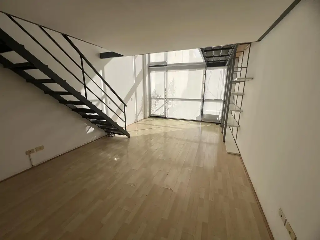 Dúplex tipo loft. Living Comedor con doble altura, cocina americana y balcón en PB.