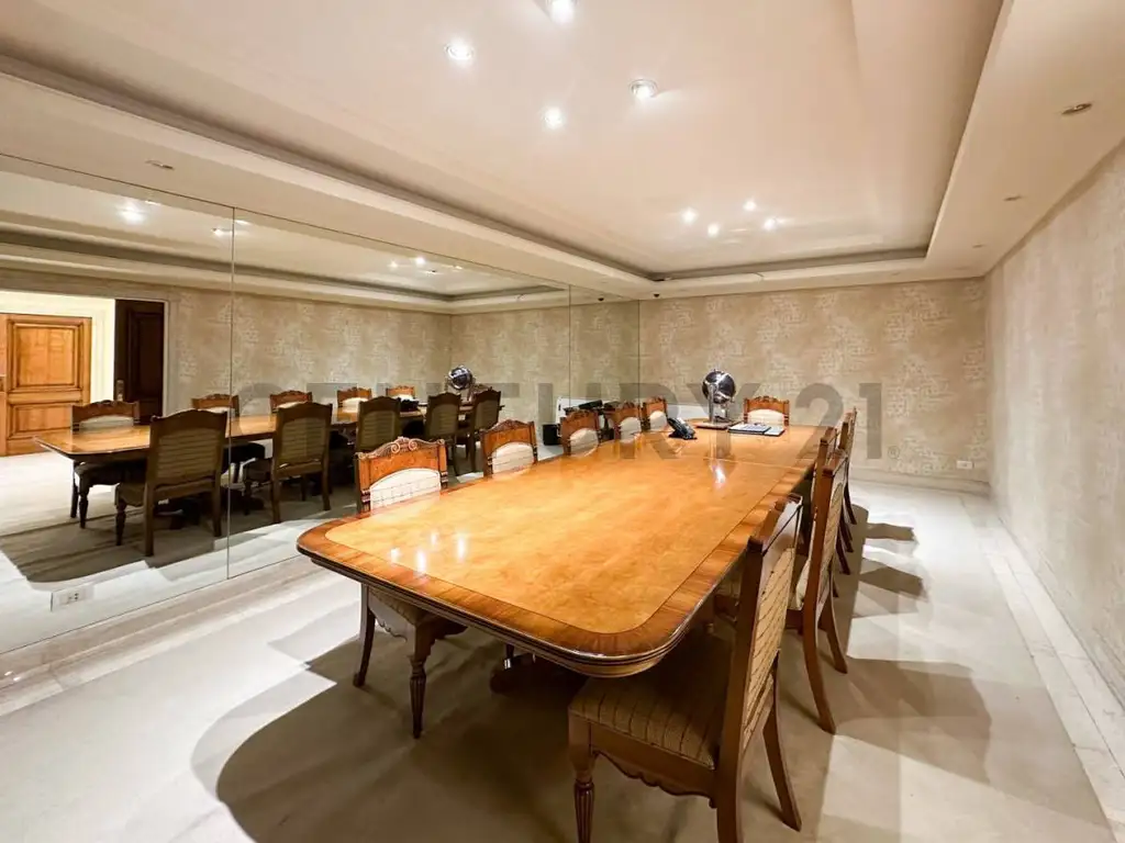 Hall de ingreso común a los dos sectores. Sector 1: Es el que esta orientado a la Ciudad, orientado a un uso administrativo. Cuenta con 290 mts cubiertos y detalles de calidad en varios despachos, Pisos de mármol, molduras, y entelados. Recepción, amplia sala de trabajo, sala de reuniones con pared espejada , cocina, hall de distribución, archivo, 2 baños, 2 despachos y un amplio salón o despacho de Presidencia.