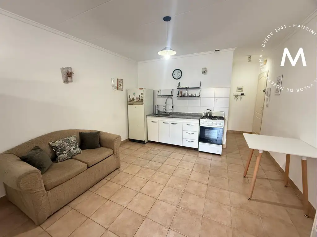 Al ingresar al departamento, nos encontramos con un amplio living/comedor con salida al balcón; la cocina está integrada y cuenta con un baño completo.
