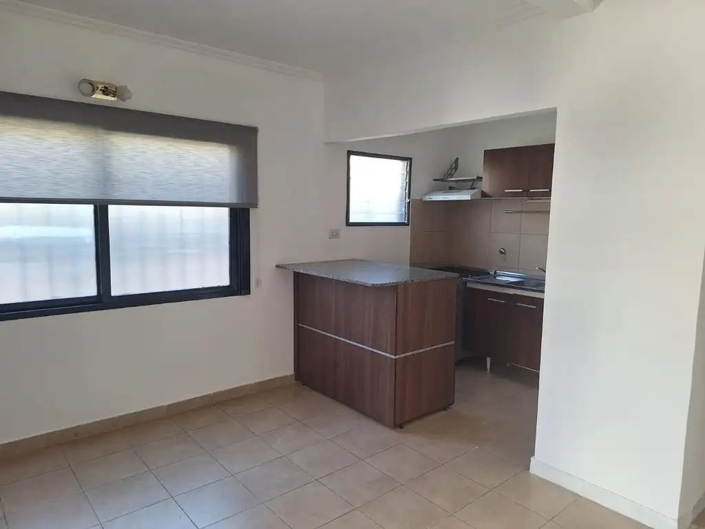 * Cocina integrada 1,60 x 2 con muebles bajo mesada, alacena y barra desayunadora.