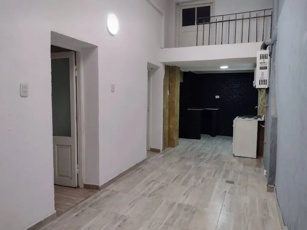 Ingresamos al inmueble por pasillo interno, cuenta con un living integrado a lo que en su momento fue un patio, con cocina integrada, tiene un dormitorio amplio con placar empotrado a la pared, sin ventana, el segundo dormitorio es más chico, con vista al pasillo de ingreso, con ventana y rejas, tiene un toilette y un baño con ducha, con espacio y conexión para lavarropa, accedemos por escalera a un entrepiso de 1,63 metros de altura, que puede ser un tercer dormitorio o escritorio, con ventilación al exterior.