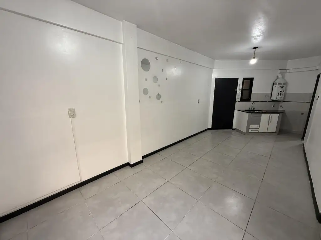 Tipo casa de dos ambientes, un dormitorio, cocina integrada, baño y patio.