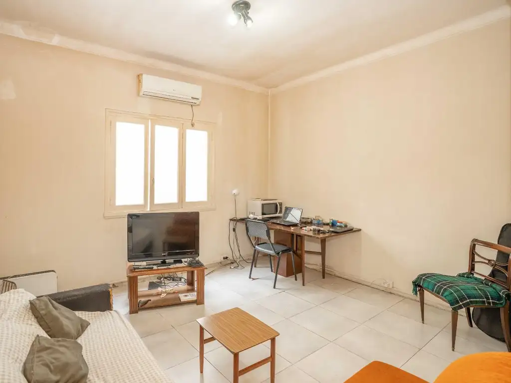 La propiedad se encuentra en un edificio de estilo clásico, con living comedor luminoso, cocina independiente, lavadero y un baño de época en buen estado. El dormitorio principal es cómodo y ventilado. Además, el departamento cuenta con una pequeña habitación adicional ubicada en la terraza, ideal como escritorio, espacio de guardado o cuarto de servicio.