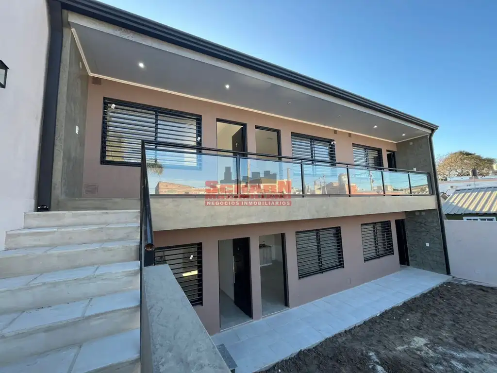 Departamentos de 1 dormitorio amplio con cocina comedor integrada y baño. Planta alta balcón con lavadero; planta baja patio con lavadero. Lugares de cochera disponibles para venta o renta.