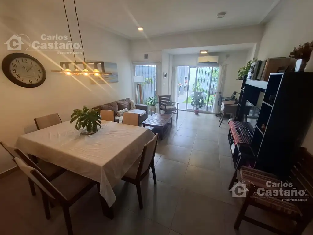 El área social integra un espacioso living comedor, cocina y comedor diario. El exterior presenta un jardín encantador y un patio ideal para disfrutar al aire libre. Además, incluye un lavadero independiente.