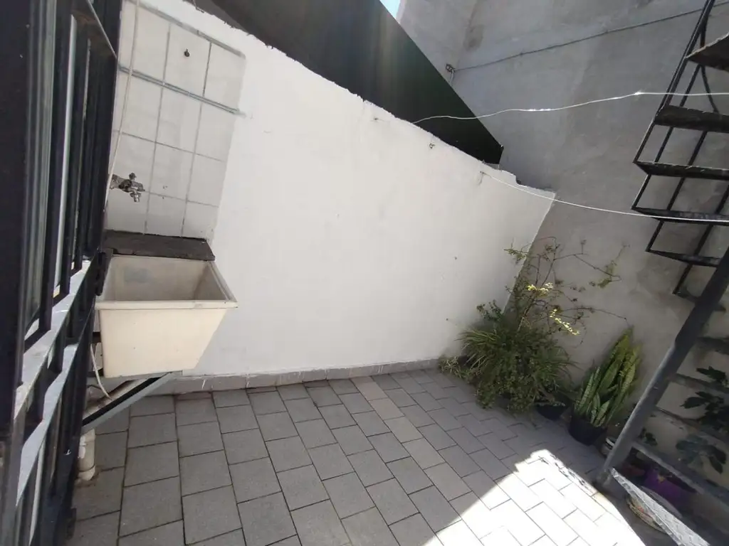 Desde el living comedor accedemos a traves de una puerta ventana amplia al patio donde esta ubicado el lavadero y alli hay una escalera que nos lleva a la terraza, donde tenemos una parrilla y espacio para mesa y sillas.